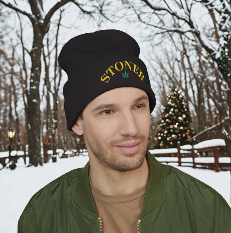 toner Embroidered Cuffed Beanie – Retro Curved Text Winter Hat