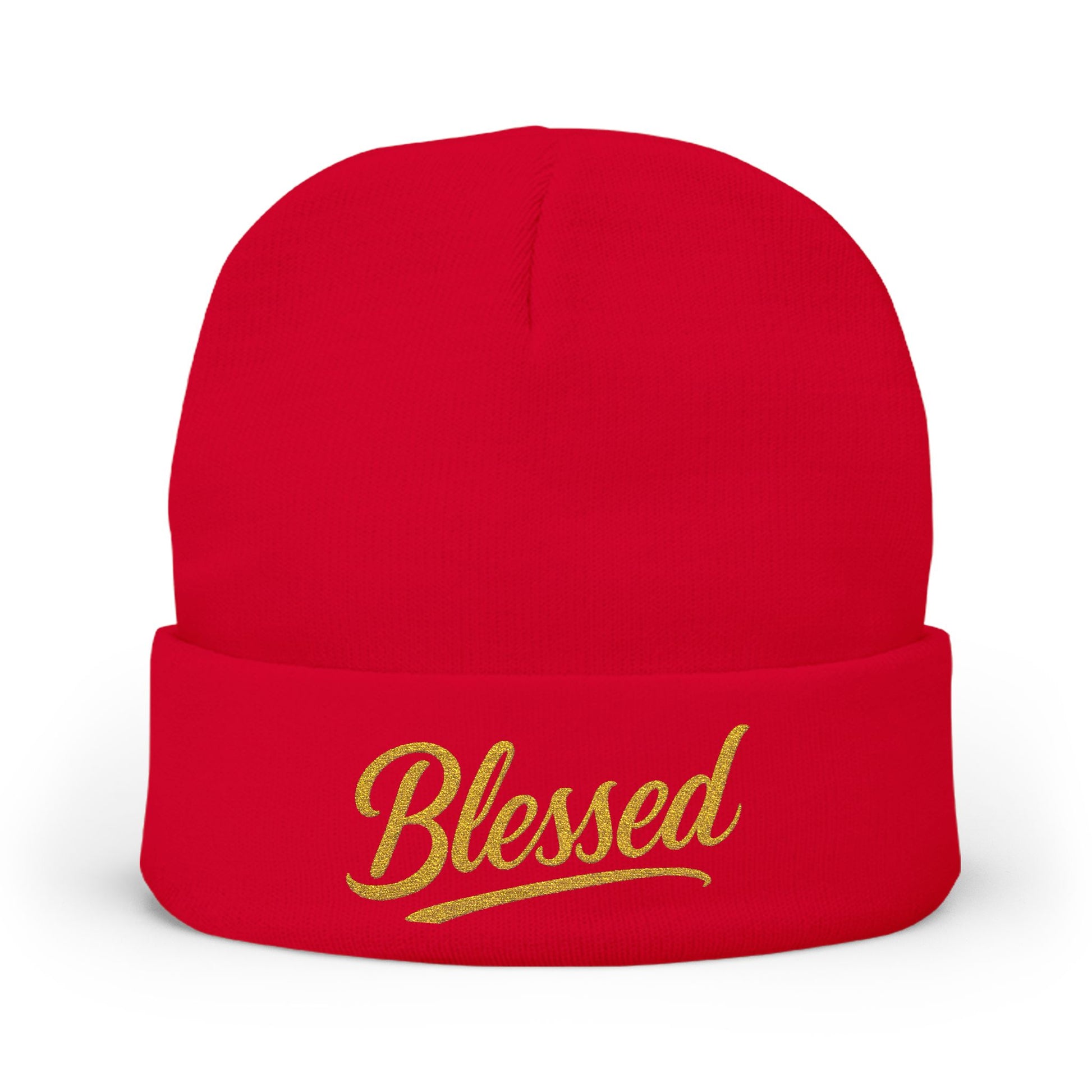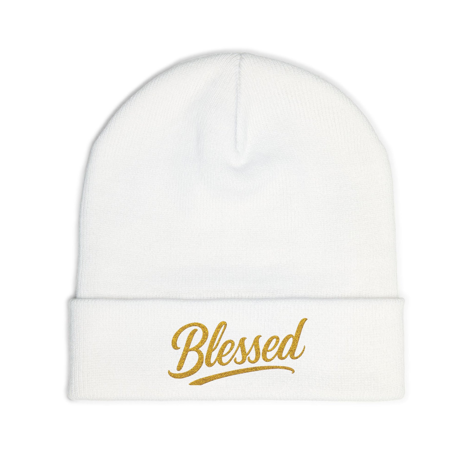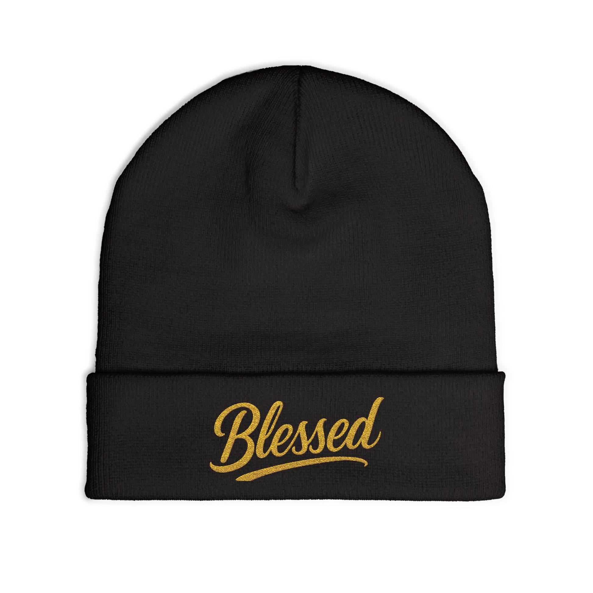 Blessed Gold Lettering Embroidered Beanie | Inspirational Winter Hat