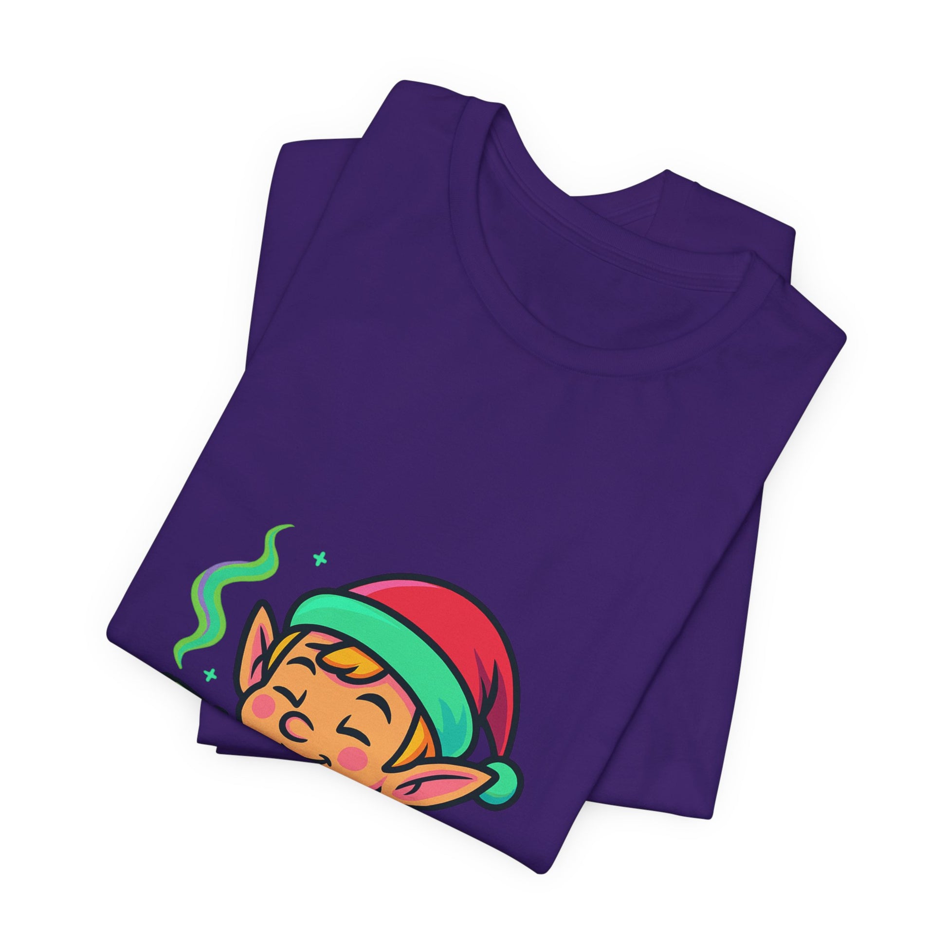 This lightweight crew tee brings a cheeky, laid-back twist to holiday wear. A grinning elf puffing a smoke and the playful phrase “Have a Holly Jolly Highmas” sit bright and bold on the chest, turning a familiar festive vibe into something relaxed and mischievous. The breathable Airlume combed cotton feels soft against skin and layers easily under jackets or over long sleeves. Thoughtfully finished with side seams, shoulder tape, and a ribbed collar, it keeps its shape through repeated wear and wash. Wear it while decorating, at small gatherings, or lounging at home to add a warm, irreverent wink to the season.