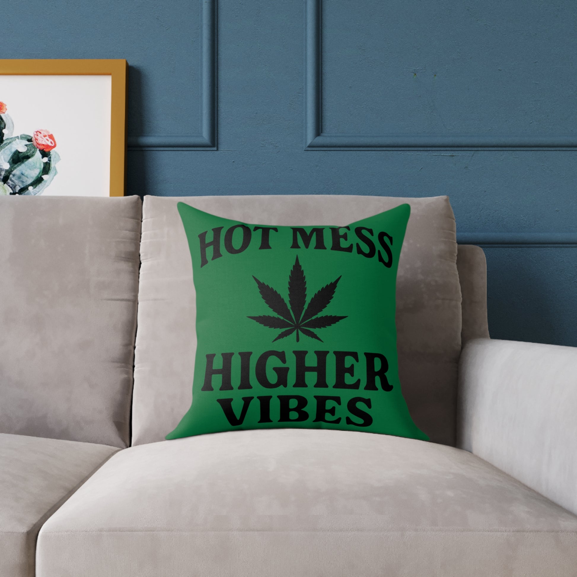 Hot Mess Higher Vibes Pillow — Green Cannabis Leaf Decorative Throw Pillow