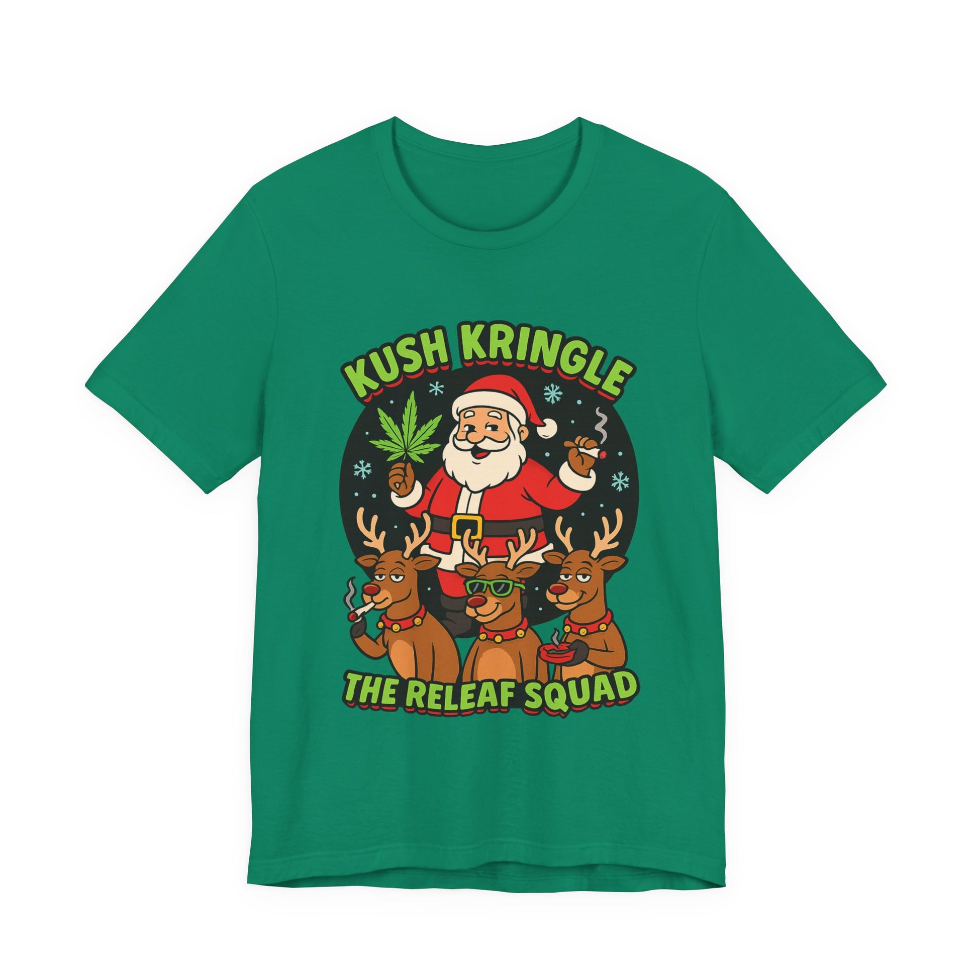 Kush Kringle Christmas Tee — "The Releaf Squad" Santa & Reindeer Holiday Shirt