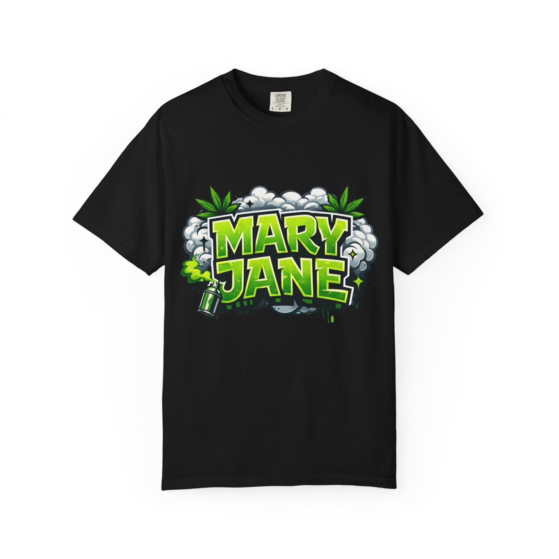 Bold Mary Jane block lettering in a clean street-style design. Perfect for stoners who love urban vibes, hip hop culture, and everyday cannabis lifestyle wear. Great gift for 420 lovers.